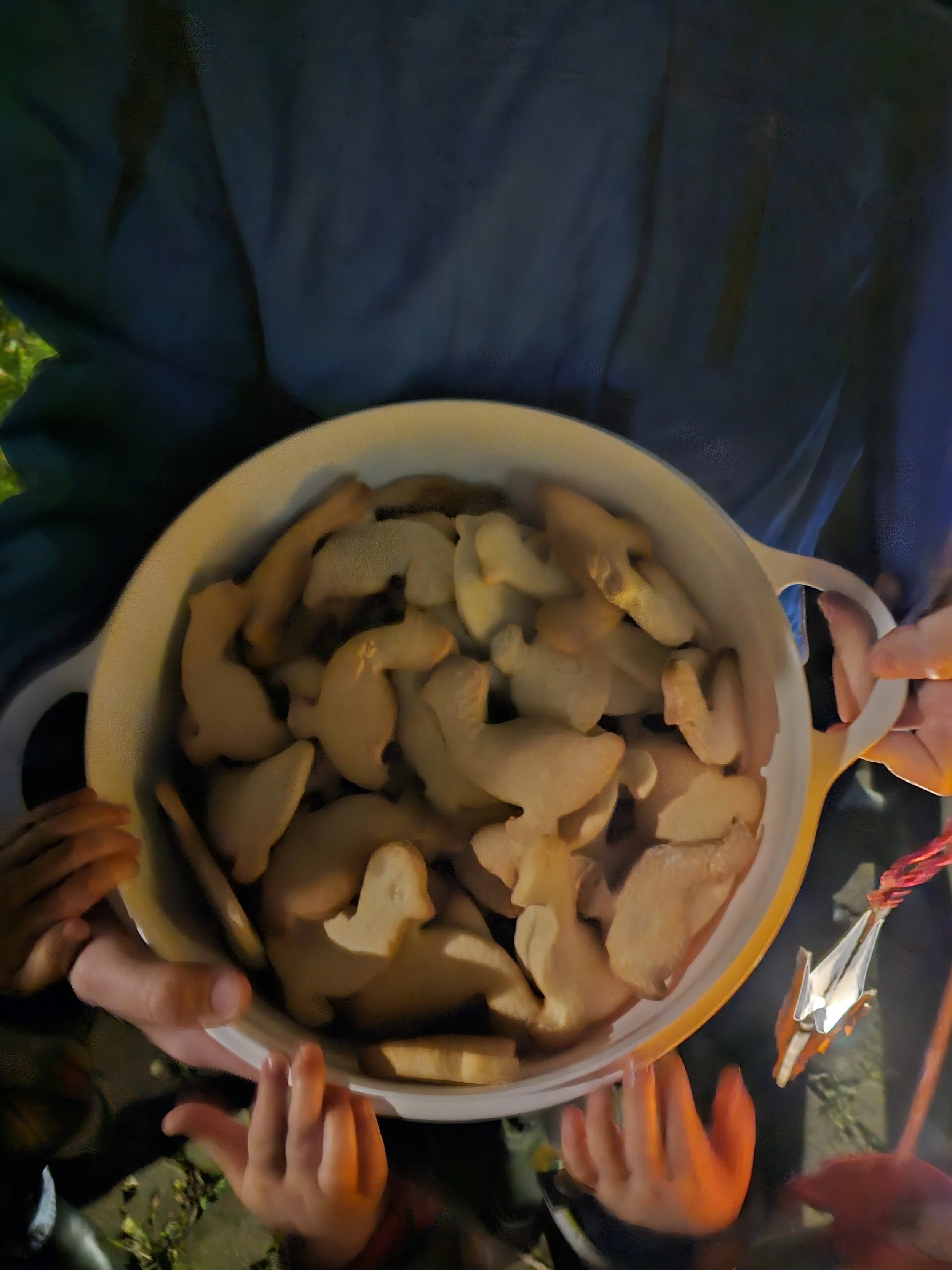Draußen an der Feuerschale wurde Stockbrot gemacht. Der Teig wurde um die Stöcke gewickelt, gedreht und geduldig gebacken. Für viele Kinder war dies ein besonderer Moment des Abends.