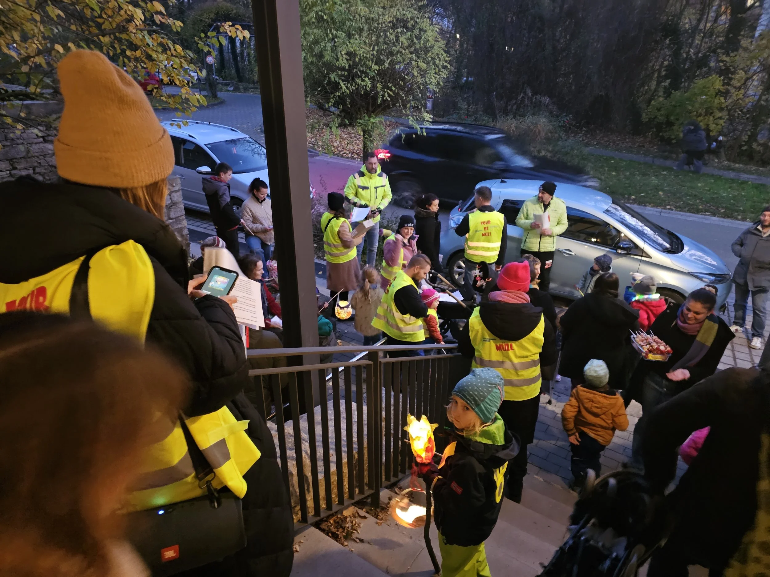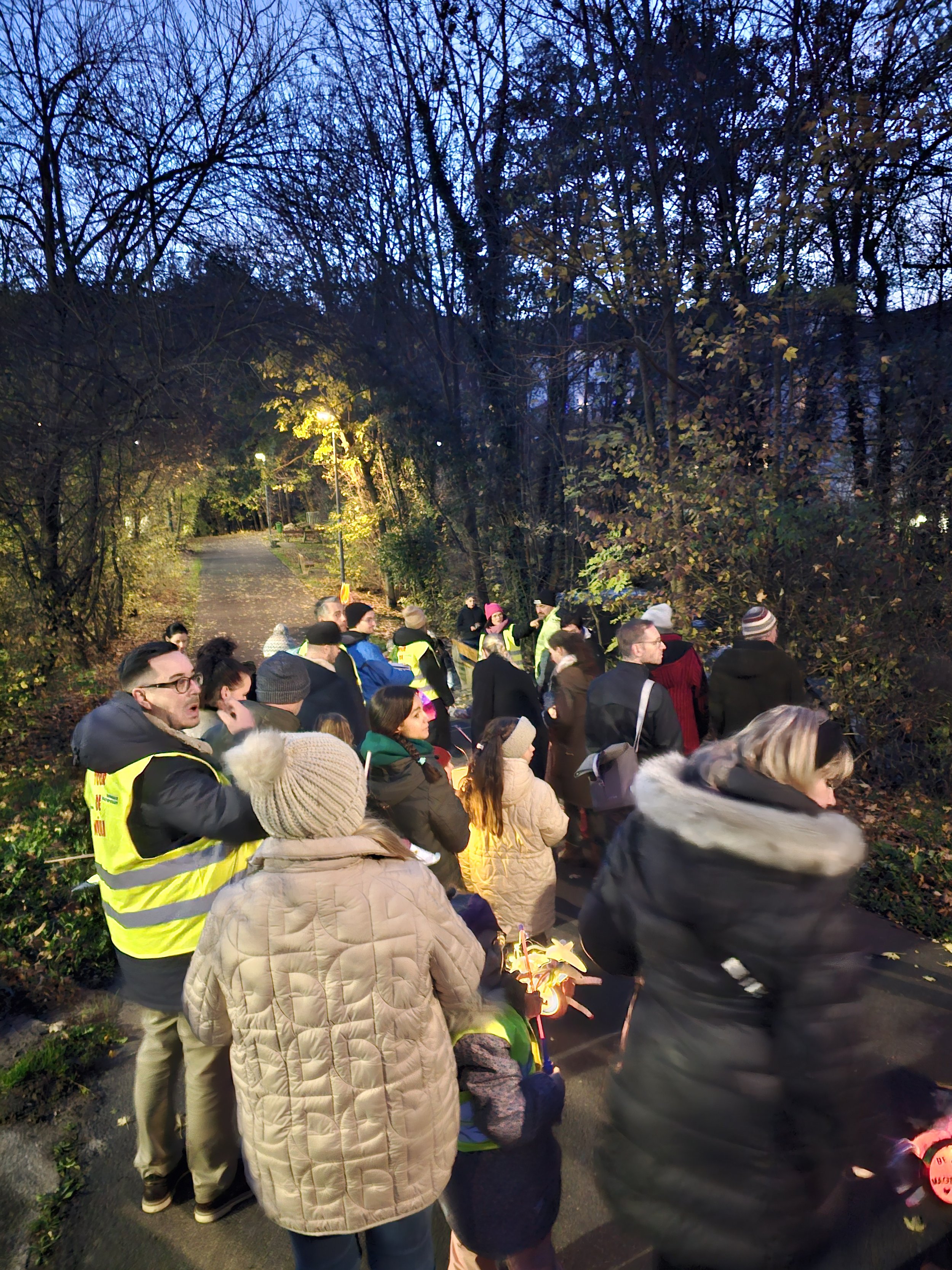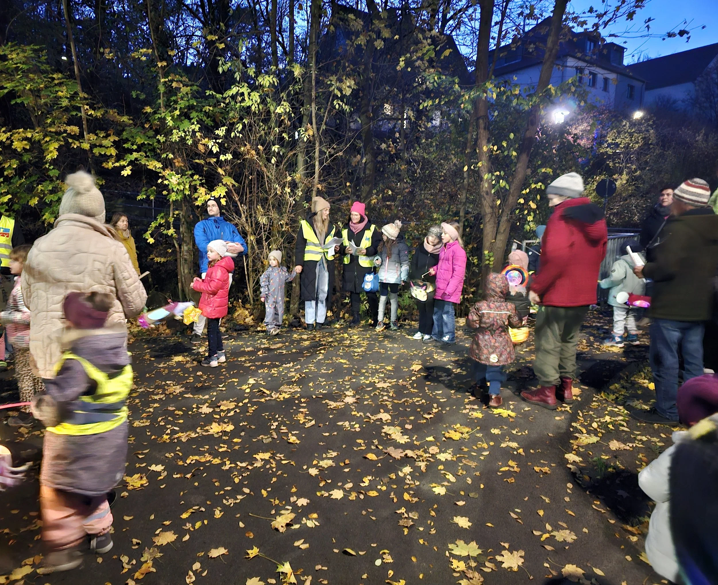 Gegen 17 Uhr trafen sich Kinder und Eltern am Kinderhaus. Es wurde langsam dunkel, die Laternen wurden angezündet und der Umzug setzte sich in Bewegung. Gemeinsam gingen wir durch die Straßen, begleitet von leuchtenden Lichtern und ruhigen Gesprächen.