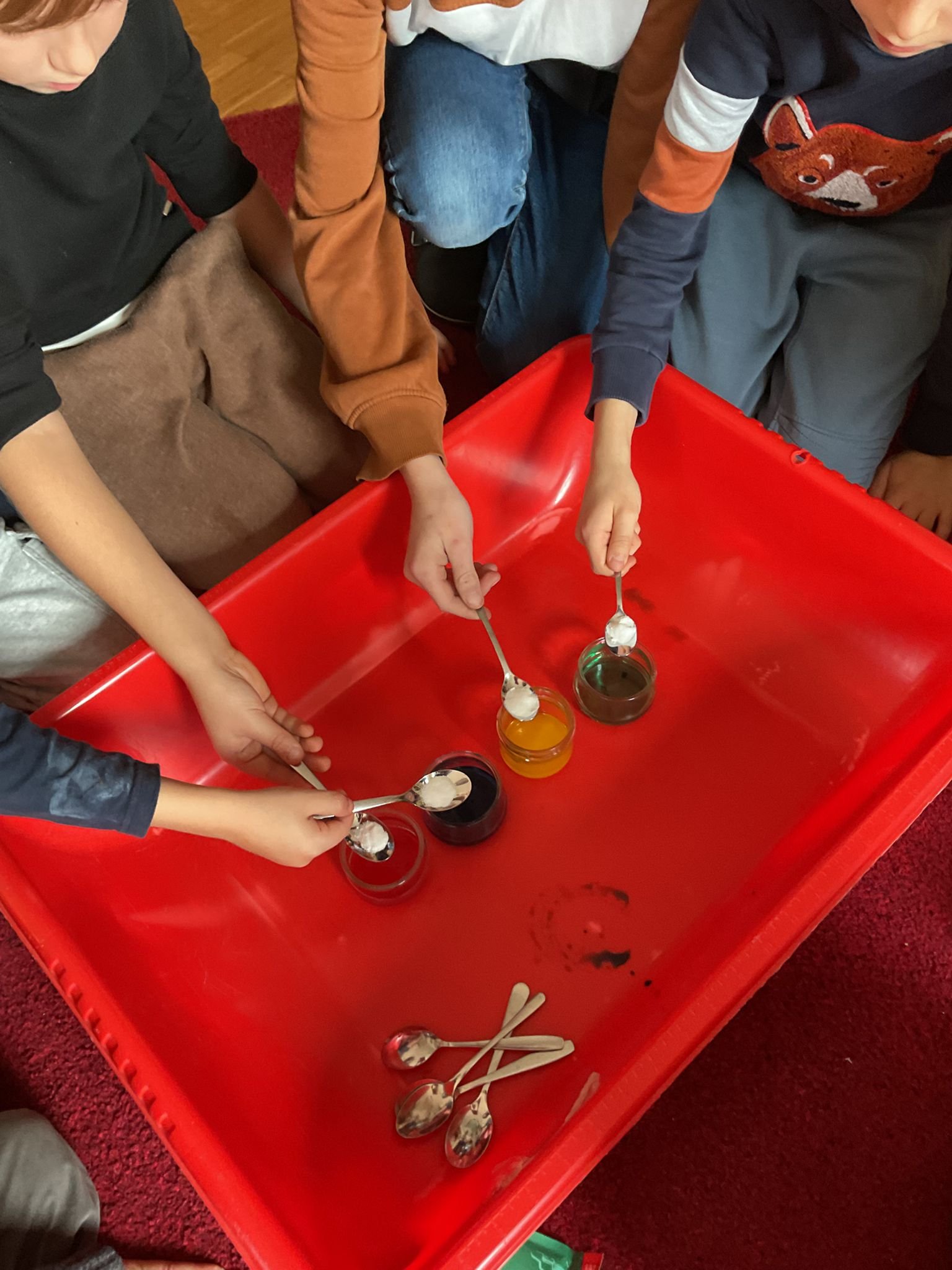 Im Mittelpunkt stand nicht das richtige Ergebnis, sondern das Ausprobieren, Beobachten und Staunen. Ganz im Sinne der Montessori-Pädagogik durften die Schulis selbst experimentieren, Vermutungen anstellen und ihre eigenen Entdeckungen machen.