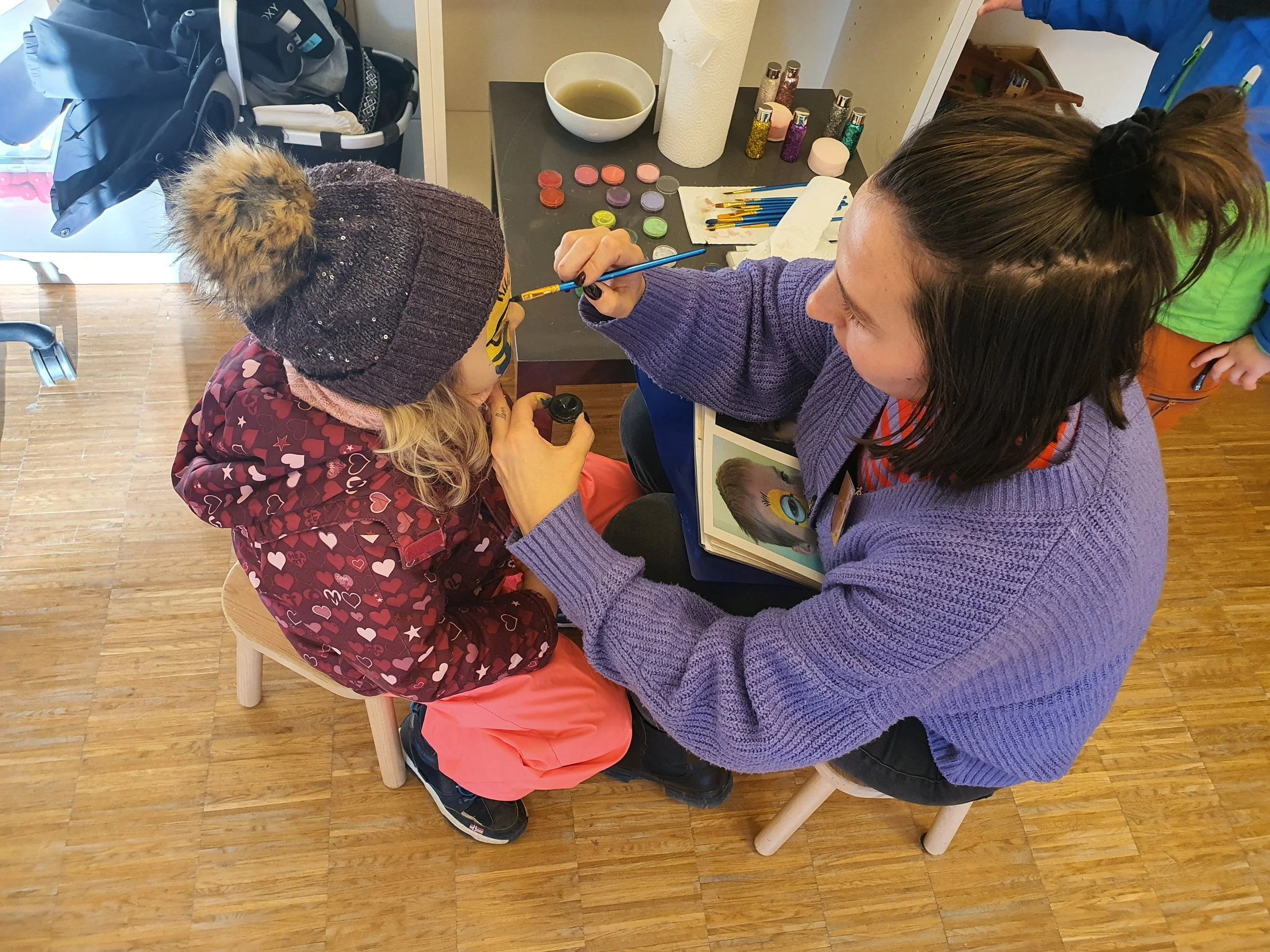 Für die Kinder gab es viel zu erleben: Beim Kinderschminken wurde konzentriert ausgewählt und stolz präsentiert, zwischendurch zog es die Kinder immer wieder durch das Haus – von Stand zu Stand, von Raum zu Raum. Genau diese lebendige Unruhe machte den Tag aus.