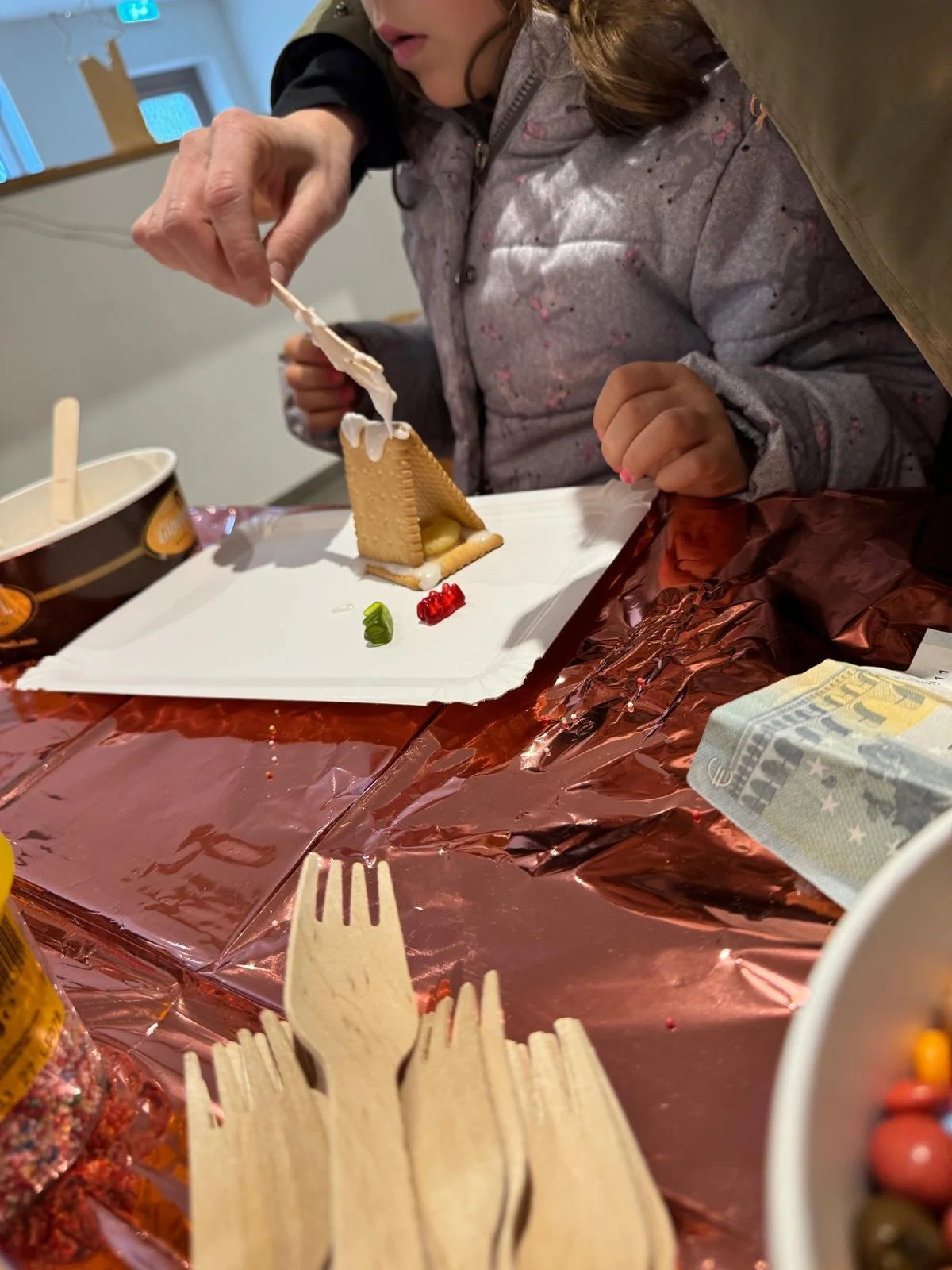Am Stand wurde gemalt und gebastelt. Besucherinnen und Besucher konnten Gipswichtel bemalen und einfache Kekshäuschen gestalten – Schritt für Schritt und mit eigenen Ideen. Es ging nicht um perfekte Ergebnisse, sondern um das Selbermachen und Ausprobieren.